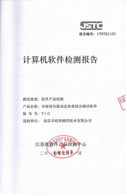 公司的卓砾智兵器动态参量综合测试软件顺利通过江苏省软件产品检测中心的检测。