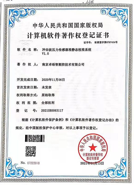 冲击波压力传感器准静态校准系统 V1.0