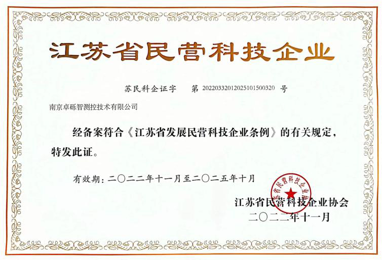 2022年获得《江苏省民营科技企业》