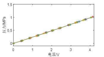 。灵敏度为4.050V/MPa。非线性按式(3)计算为0.83%,重复性按式(4)计算为0.59%,取k=2。